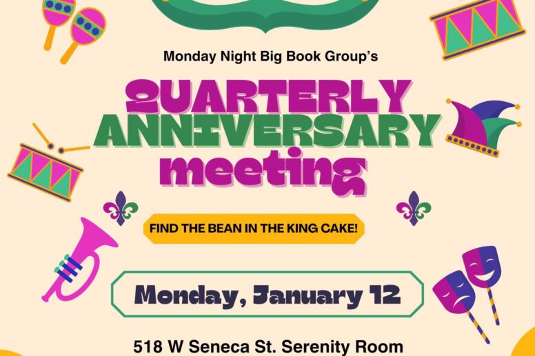 Event Ithaca AA NewsMNBBG Quarterly Anniversary Meeting Fellowship! Snacks! Surprises! Vibes! Find the BEAN in the King Cake! Monday January 12th 2026 In …